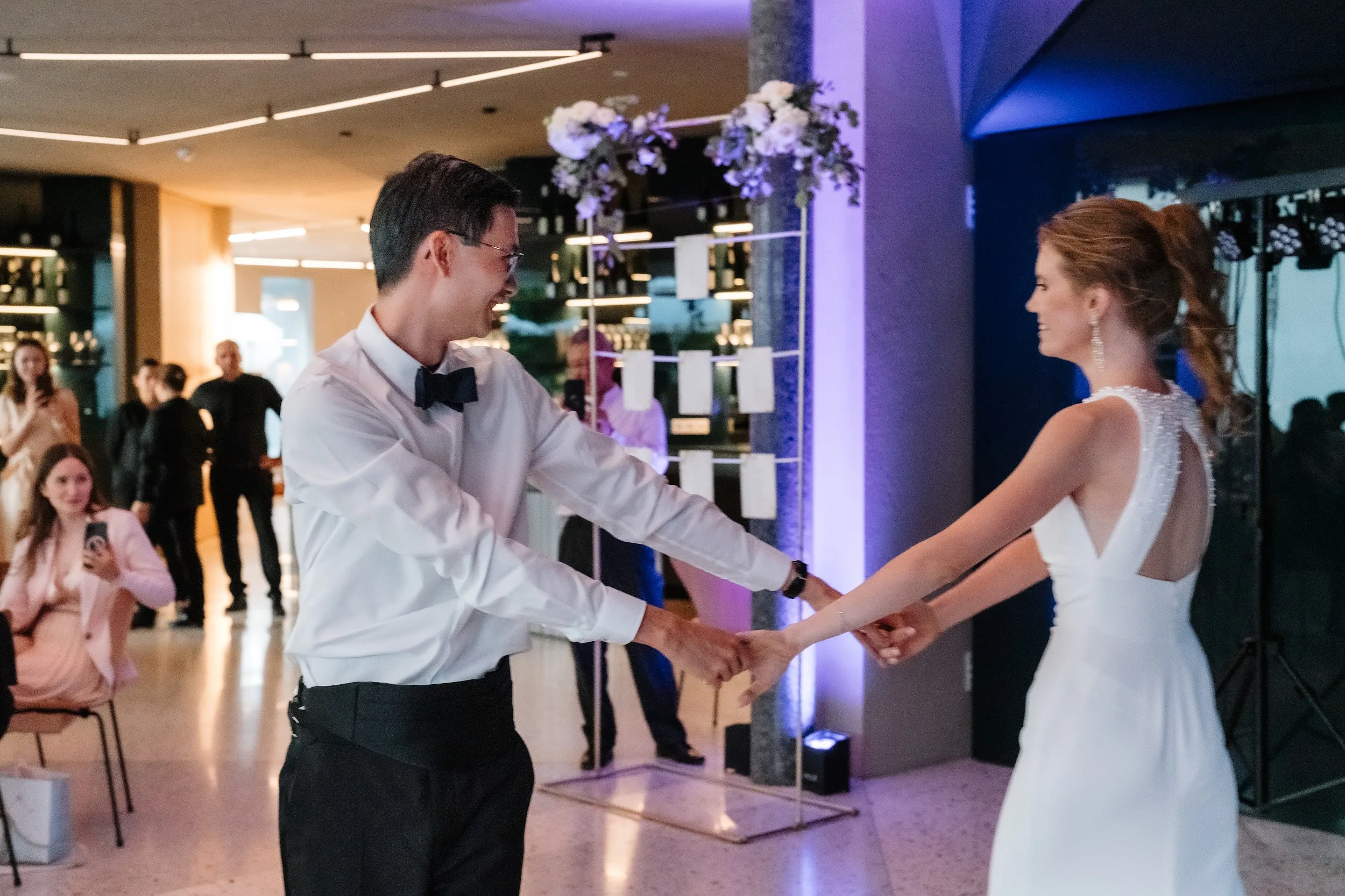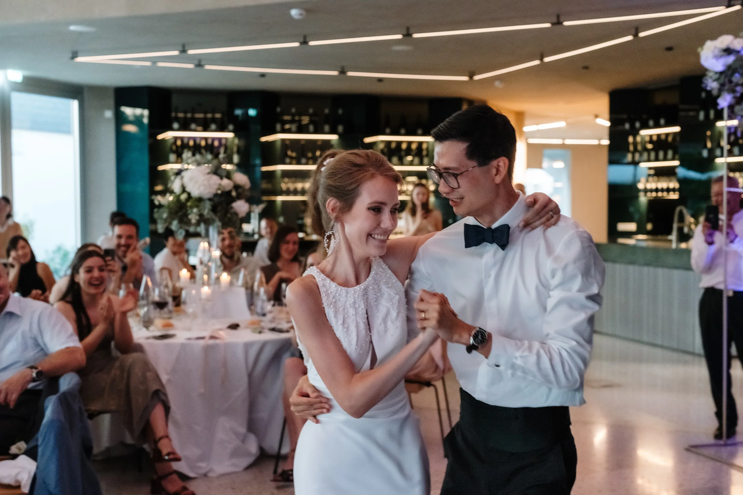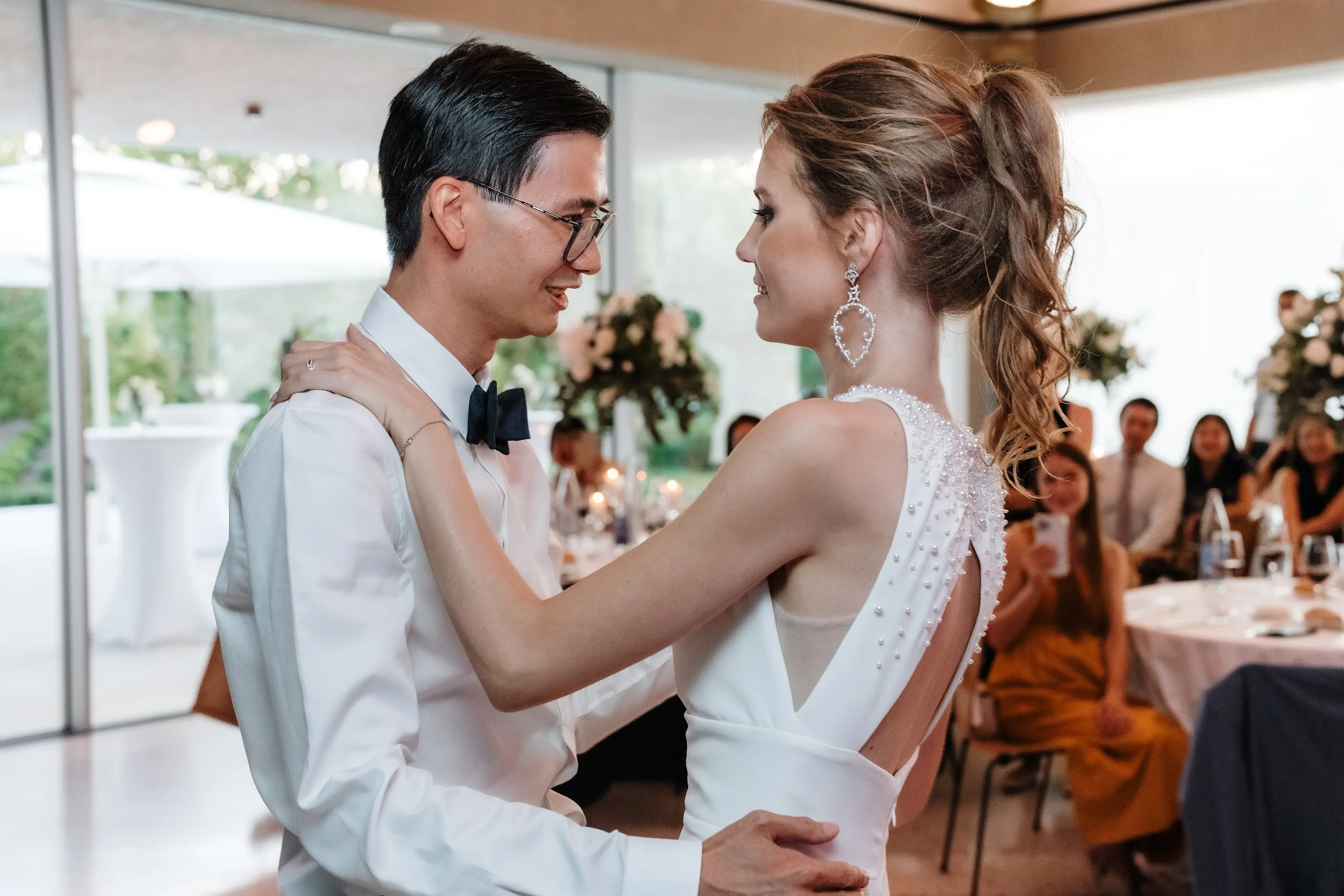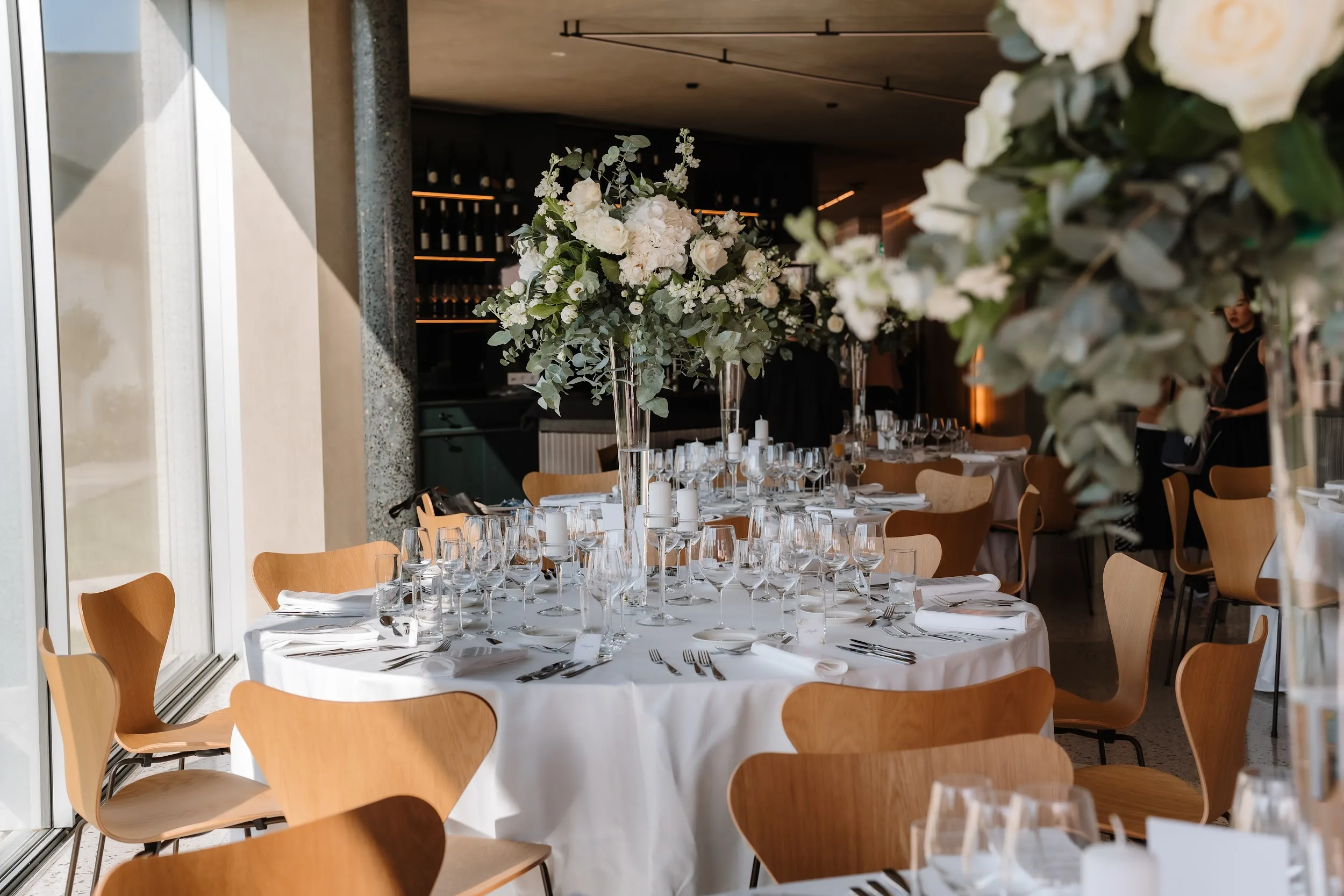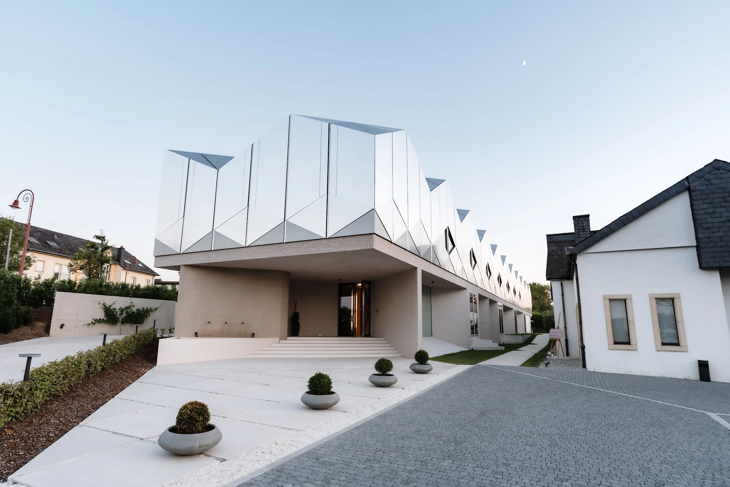 Inside the newly opened event room, a space that seamlessly combines wine, architecture, and nature, you'll find a luminous atmosphere perfect for weddings. With a seating capacity of 108 people, it's an oasis of peace and relaxation in the heart of the Domaine. Throughout your special day, you can savor high-quality wines and crémants from Domaine Claude Bentz.